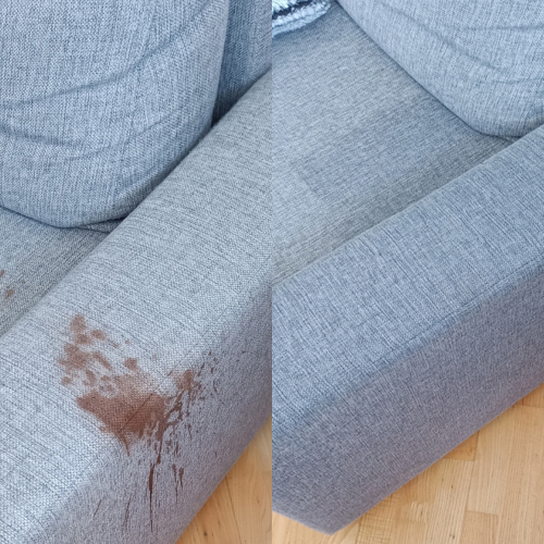 3. Odplamianie - punktowo aplikujemy odplamiacze – usuwamy ślady po napojach, jedzeniu, długopisach, mleku czy nawet krwi.